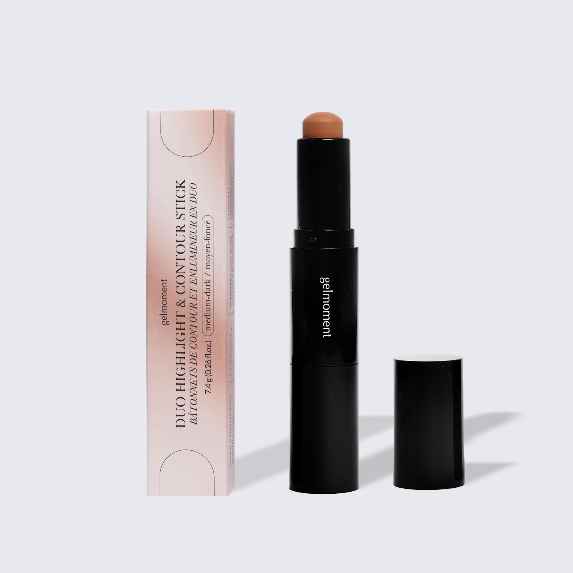 Our creamy contour & highlight duo are formulated to be lightweight and easily blendable using our “gelmoment brush”. Plus, our dual-sided applicator stick makes it easier than ever to use these complementary products together. Simply begin with the contour shade to add beautifully defined dimension to your face, then highlight to your heart’s content for a glowing finish.
